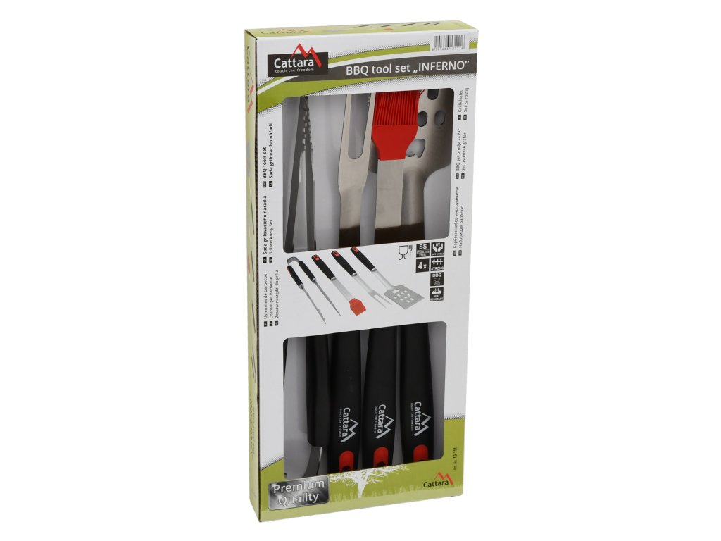 Sada nářadí prémiové kvality INFERNO, skládající se z obracečky, vidličky, kleští a mašlovačky.