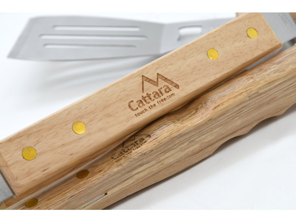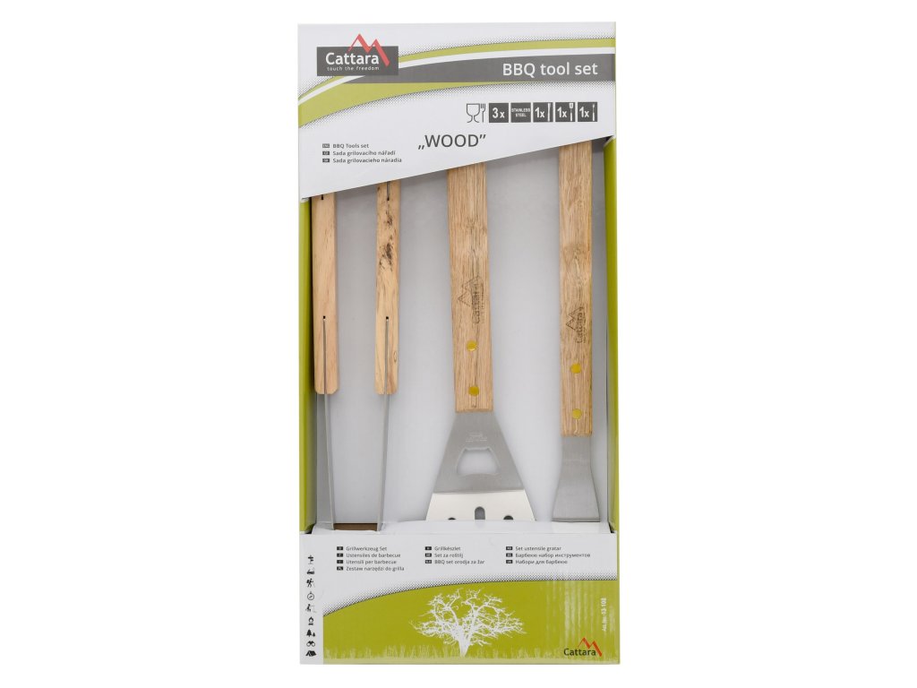 Kleště jsou speciálně tvarovány pro jistý úchop nejrůznějších pokrmů a mají délku 35 cm. Trojzubá vidlička s délkou 39 cm. Obracečka délky 40,5 cm s precizně zabroušenou hranou, a odtokovými otvory pro otáčení masitých ale i jiných pokrmů.