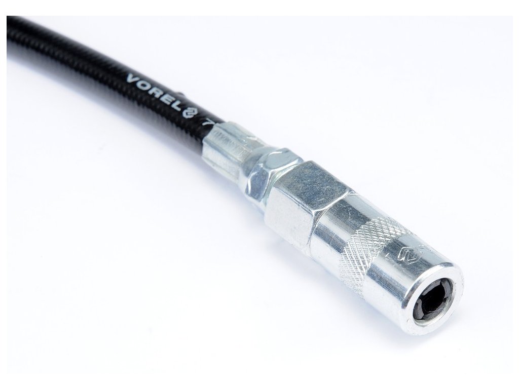 Náhradní tlaková hadice pro mazací lisy s kvalitní 4 čelisťovou hlavou pro připojení k mazacím niplům.