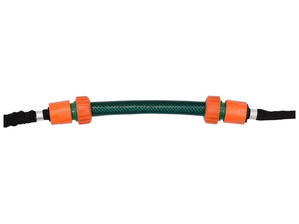 Hadice vybavená 2 konci, oba pro připojení rychlospojkou. Jeden konec s maticí. Šroubovací uzávěr - uzavření systému, odšroubovaný - pokračování systému. Spojení mezi hadicí postřikovače a tradiční hadicí je možné pomocí univerzální rychlospojky. Její výběr závisí na průměru vaší zahradní hadice (1/2", 3/4" nebo 1"). Doporučuje se použít plastové rychlospojky (mosaz nemusí pasovat).