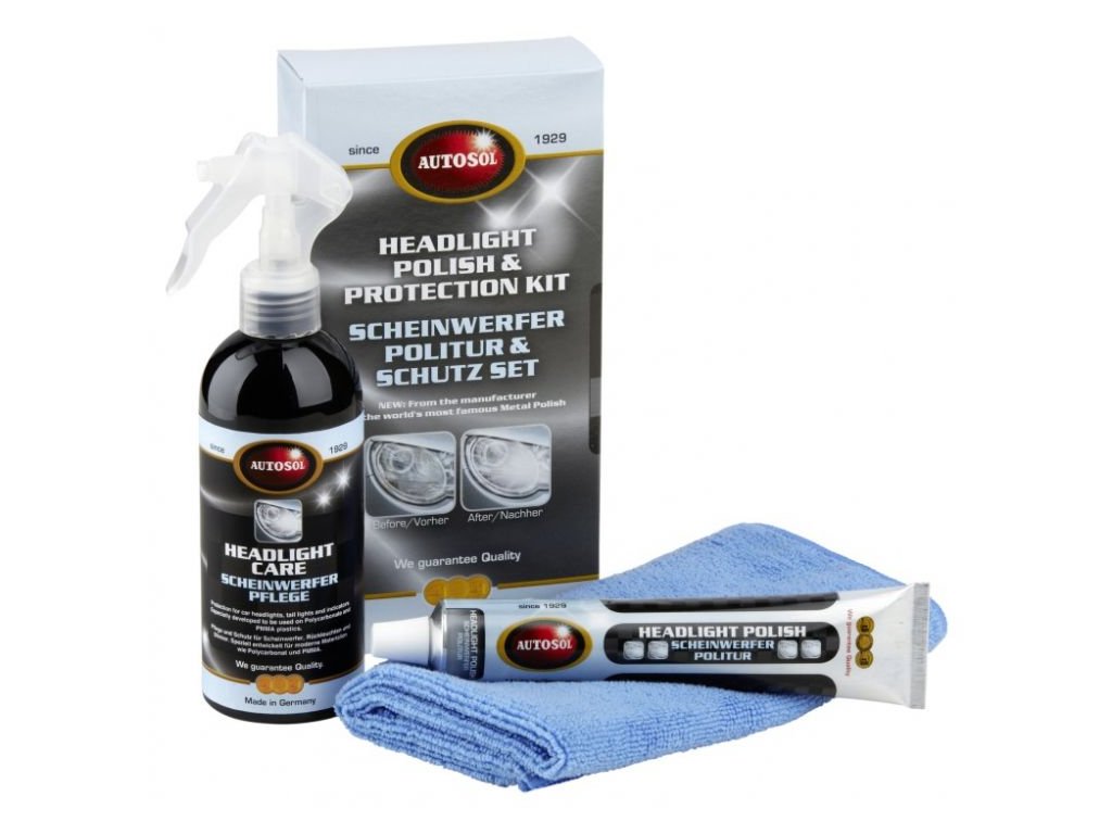 Sada na čištění světlometů obsahuje pastu a emulzi. V prvním kroku pasta důkladně vyčistí a vyleští přední i koncová světla. Odstraní jemné poškrábání, znečištění. Ve druhém kroku na světla jednoduše aplikujete ochranný prostředek emulze Headlight Polish, která vytvoří dlouhotrvající vrstvu. Ochranná vrstva odpuzuje vodu i nečistoty. Poskytuje zároveň jasný lesk a obnovuje svítivost světel.