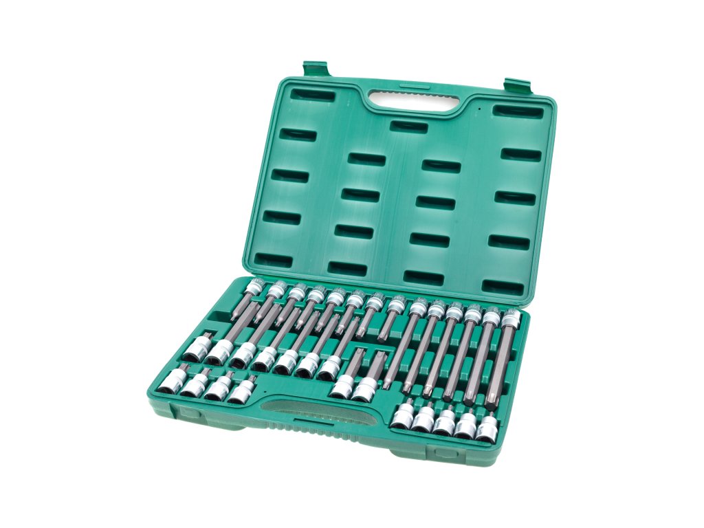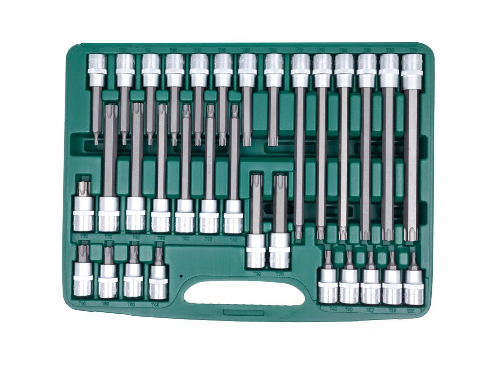 Hlavice 1/2” TORX, vel. T20-T70, krátké a prodloužené, sada 32 ks – JONNESWAY S07H4932S