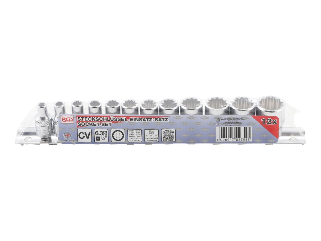 Hlavice 1/4" nástrčné, 12-hran, palcové 12ks - BGS 2755