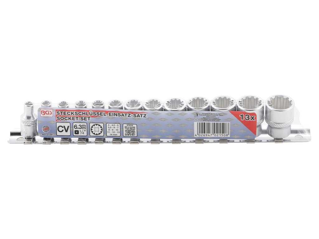 Hlavice multiprofilové 1/4”, velikosti 4-14 mm, sada 13 ks, univerzální - BGS 2150