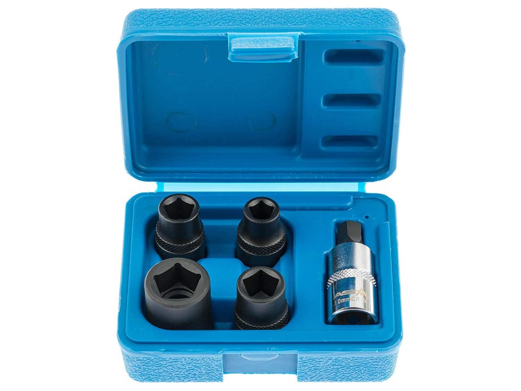 Sada hlavic na montáž a demontáž brzdových třmenů ASTA A-12003UPG Rozměr vodicího čtyřhranu: 1/2“ Vyrobeno z chrom-vanadové (Cr-V) oceli. Souprava obsahuje: 1x zástrčná hlavice 10 mm 4x nástrčná hlavice: 10, 12.5, 14, 19 mm Dodáváno v plastové krabičce.Doplňkové parametry