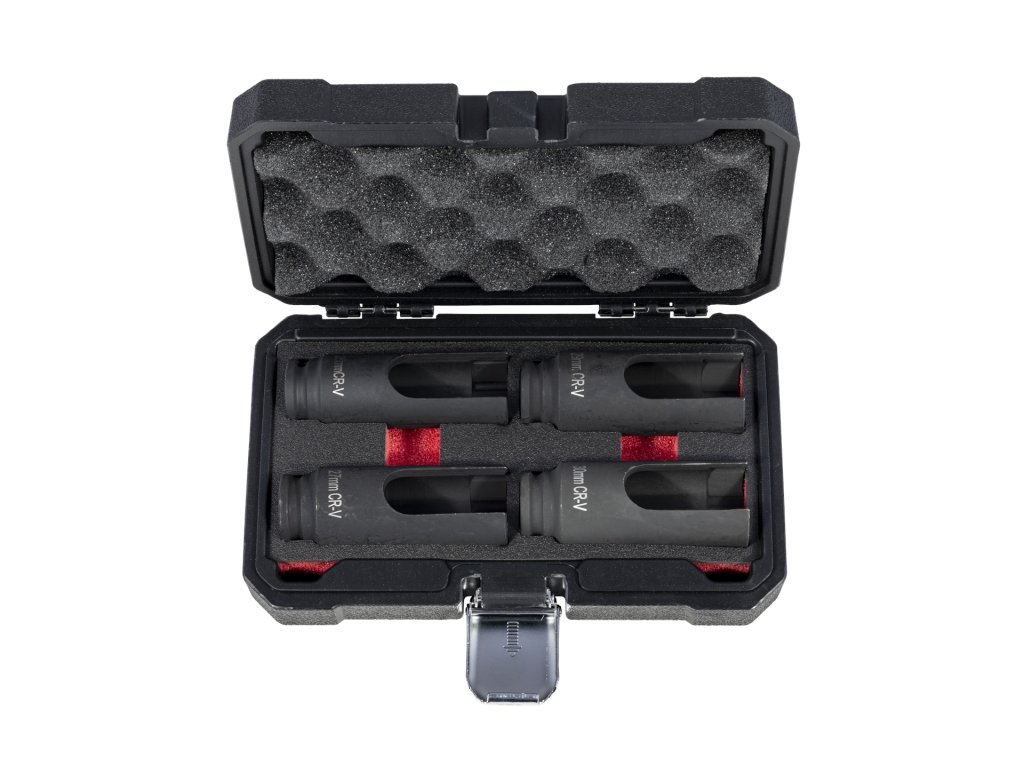 Sada hlavic - klíčů na demontáž dieselových vstřikovačů, tzv. vstřiků QUATROS QS20499 Pro klasické i tzv. piezoelektrické vstřikovače. Vodicí čtyřhran: 1/2“ Společná délka: 100 mm Souprava 4 kusy obsahuje hlavice rozměrů: 25 mm – vstřikovače SIEMENS, motory 2.0 l DW10 HDI (koncern PSA, Ford, Toyota atd.) 27 mm – vstřikovače SIEMENS PIEZO, motory 2.0L DW10 HDI (koncern PSA) 29 mm – vstřikovače BOSCH, motory CDI a HDI 30 mm – vstřikovače BOSCH, motory 1.9L F9Q Renault, Nissan Vyrobeno z chrom-vanadové (Cr-V) oceli. Baleno v kazetě z pevného plastu.Doplňkové parametry