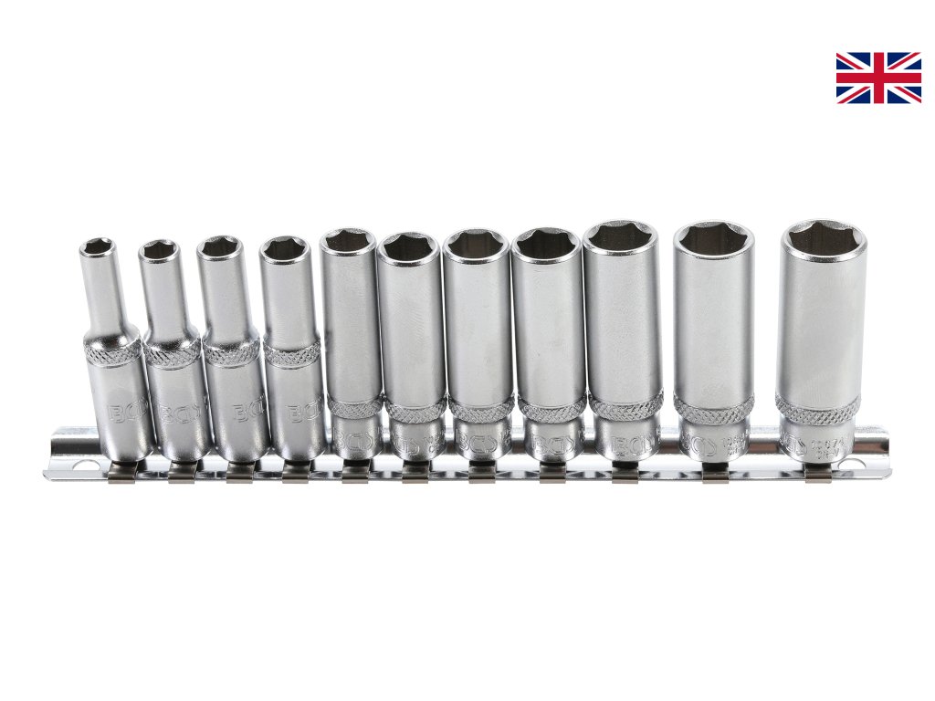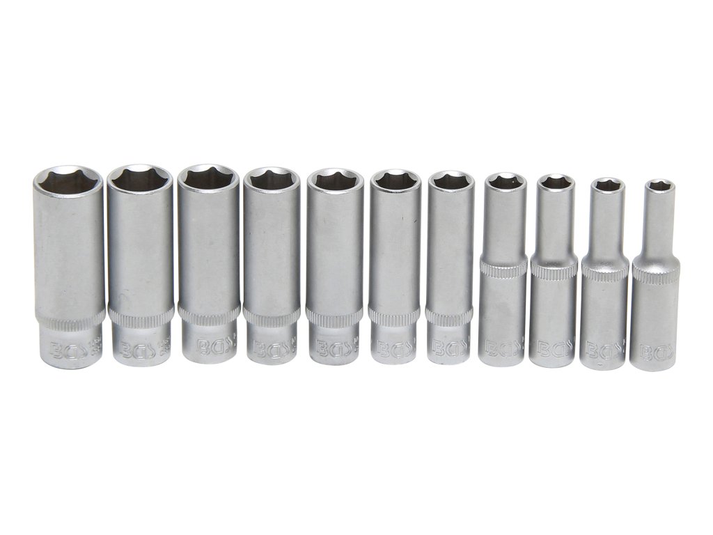Hlavice palcové 1/4” prodloužené, velikosti 3/16 až 1/2”, sada 11 ks - BGS 2429