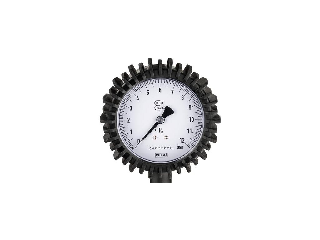 Speciální pryžové opláštění chrání manometr před lehkými nárazy.
