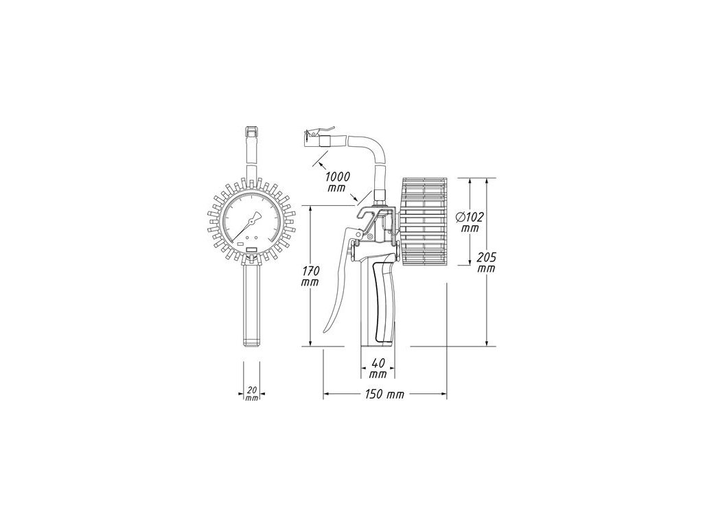 Hustící pistole pro přesné plnění pneumatik a kontrolu tlaku vzduchu s cejchovaným a snadno odečitatelným velkým manometrem.