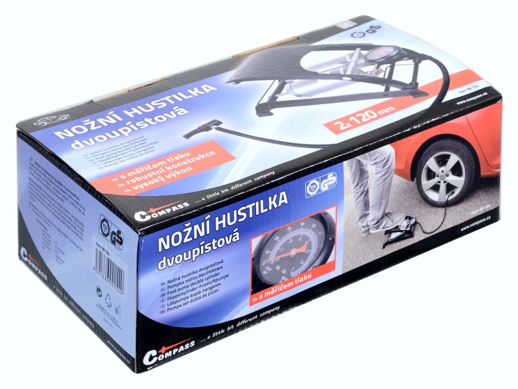 Hustilka nožní s manometrem dvoupístová TÜV/GS 2x120mm