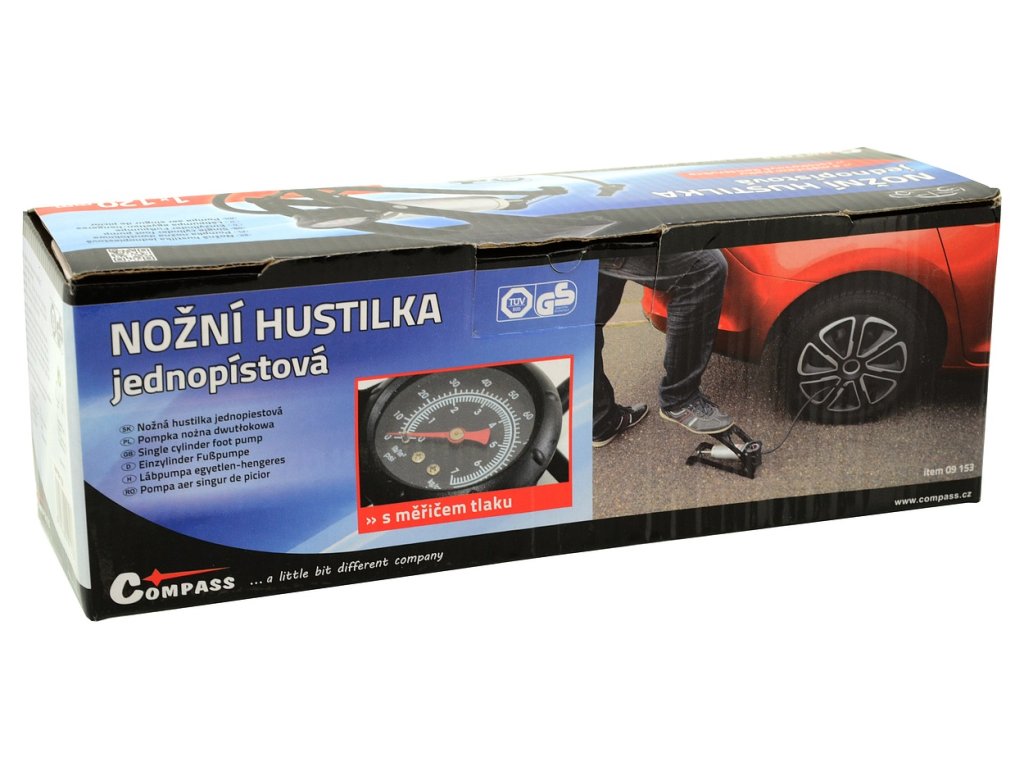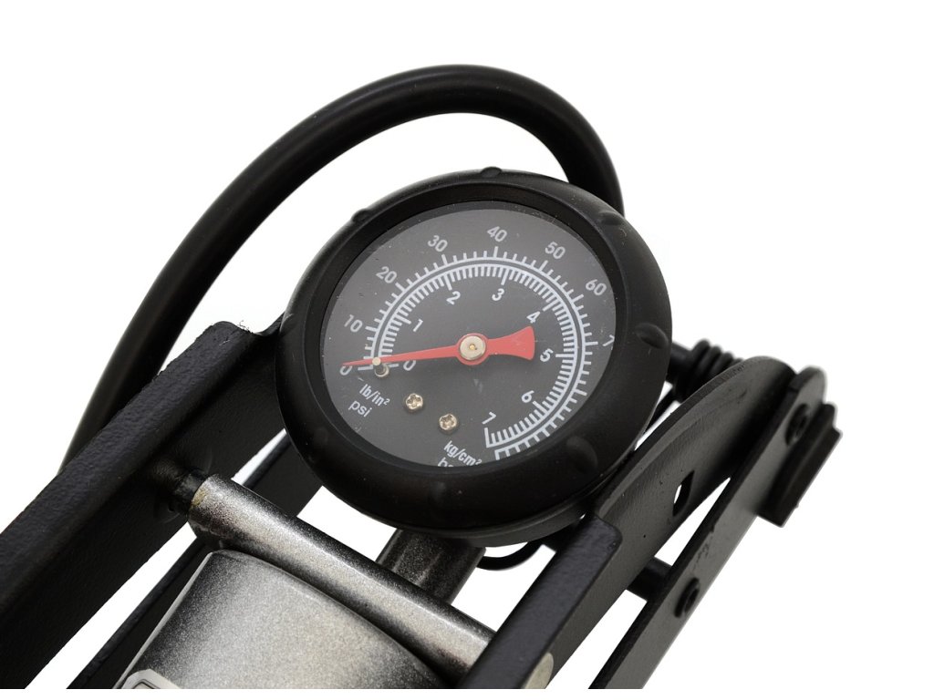 Hustilka nožní s manometrem jednopístová 1x120mm