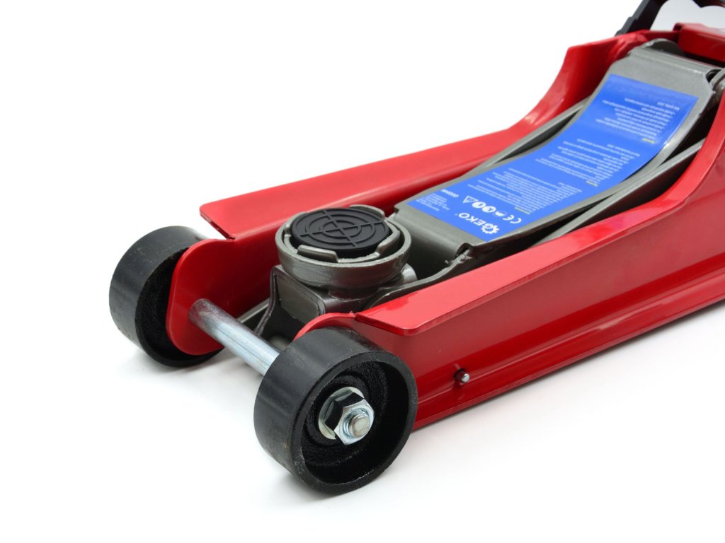 Hever na auto – pojízdný hydraulický zvedák s nosností 2500 kg, nízkým profilem a ocelovými kolečky – GEKO G02046 SMART.