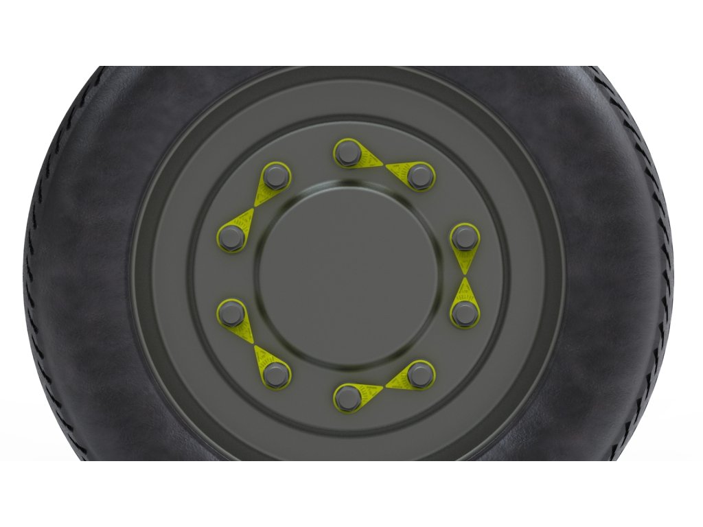 Ukazatel, tzv. indikátor povolené kolové matice rozměru 24 mm, tzv. matkový indikátor – Checkpoint CPY24 Plastová šipka ze speciálního materiálu s indikačním břitem pro snadnou a velmi rychlou kontrolu dotažení matic na kolech velkých vozidel (nákladních aut včetně kamionů, autobusů apod.). Po jejich řádném utáhnutí se jednoduše nasadí na všechny matice tak, aby byly šipky srovnány do jednoduchých obrazců (např. špičky břitů na navzájem sousedících indikátorech směřující přesně na sebe apod.). Jakékoliv rozbití obrazce značí povolování matic a nutnost jejich okamžitého utažení. Odpadá tak nutnost zdlouhavé kontroly každé matice zvlášť pomocí klíče. Snižuje se riziko poškození náboje kola či ráfku nebo dokonce jeho upadnutí. Pomocí indikátoru je možné také odhalit závadu na ložiskách, náboji nebo brzdách – při nadměrném vývinu tepla se šipka deformuje a tím upozorňuje na problém. Vhodné pro přední i zadní nápravy. Ukazatel se snadno nasazuje, přitom velmi dobře drží a nehrozí jeho ztráta. Reflexní barva pomáhá při orientaci. Používání matkových indikátorů v ČR bylo schváleno ministerstvem dopravy ČR vydáním Osvědčení o schválení technické způsobilosti typu výstroje a součástí vozidel č. 2944.Doplňkové parametry