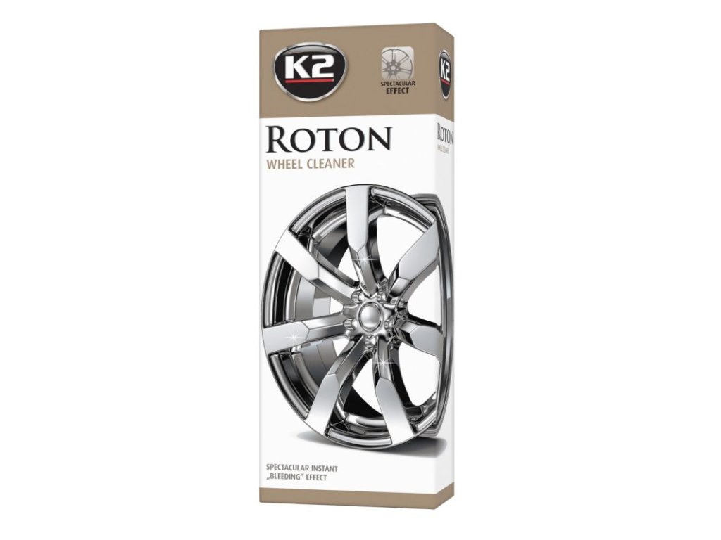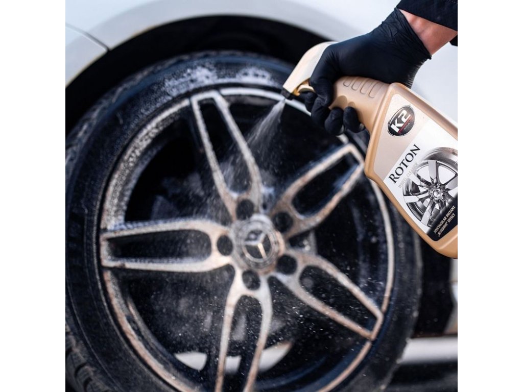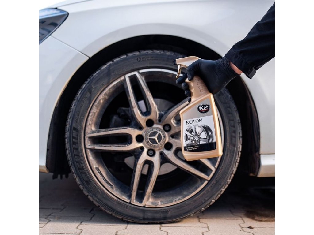 Kapalina na mytí disků. K2 ROTON neobyčejně odstraňuje a proniká do neústupné nečistoty, včetně kalů z brzdových destiček a z prašných cest.