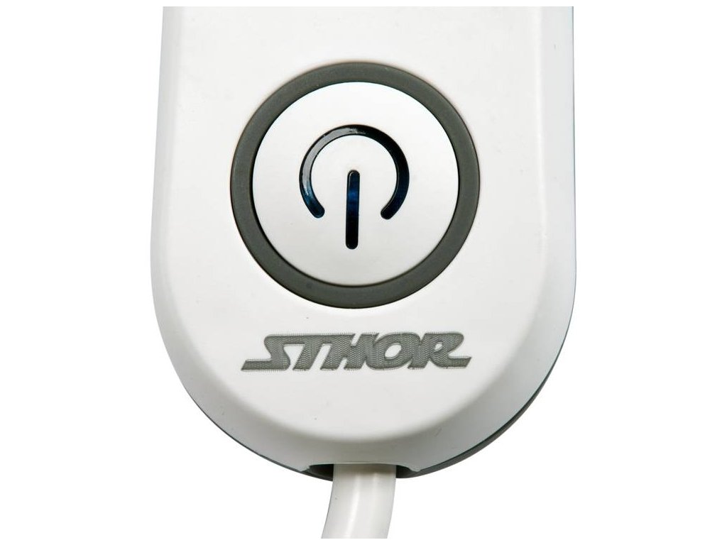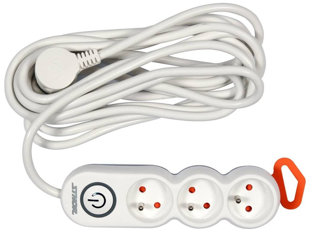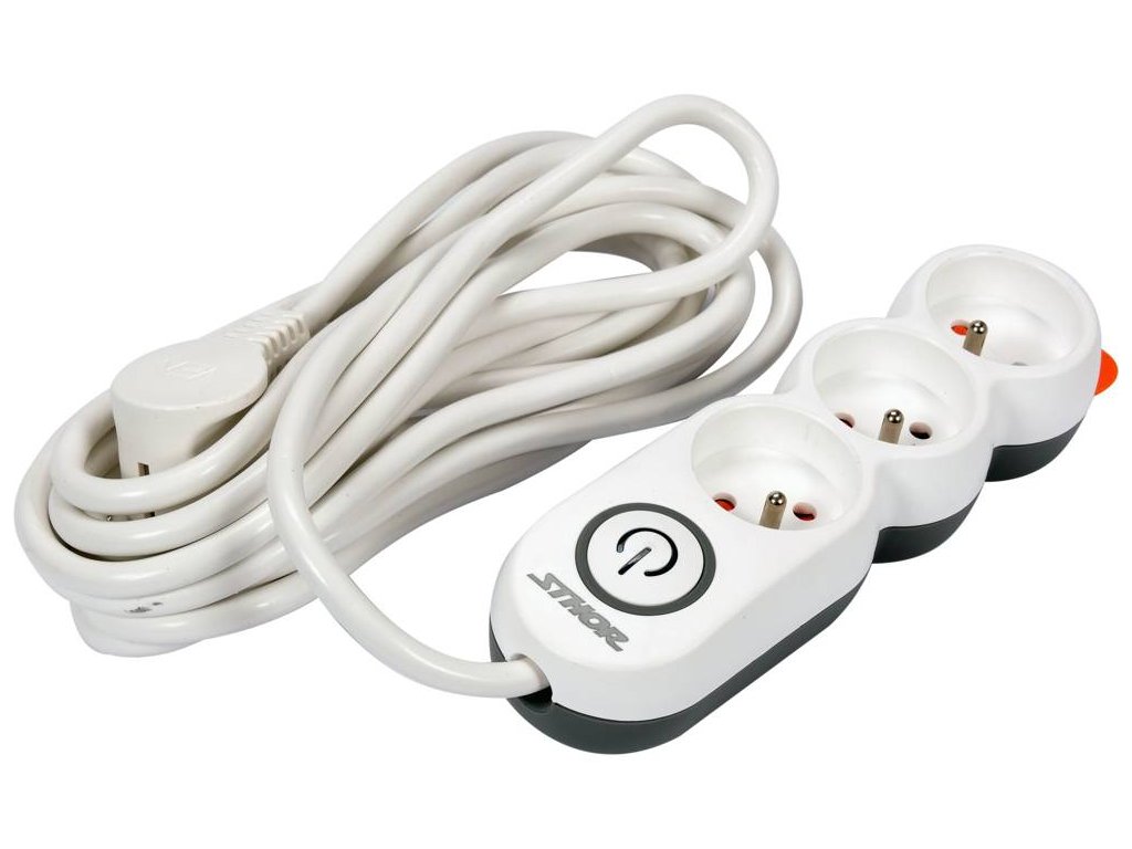 Prodlužuvací kabel, který má uzemněné zásuvky a vypínač od značky Sthor.