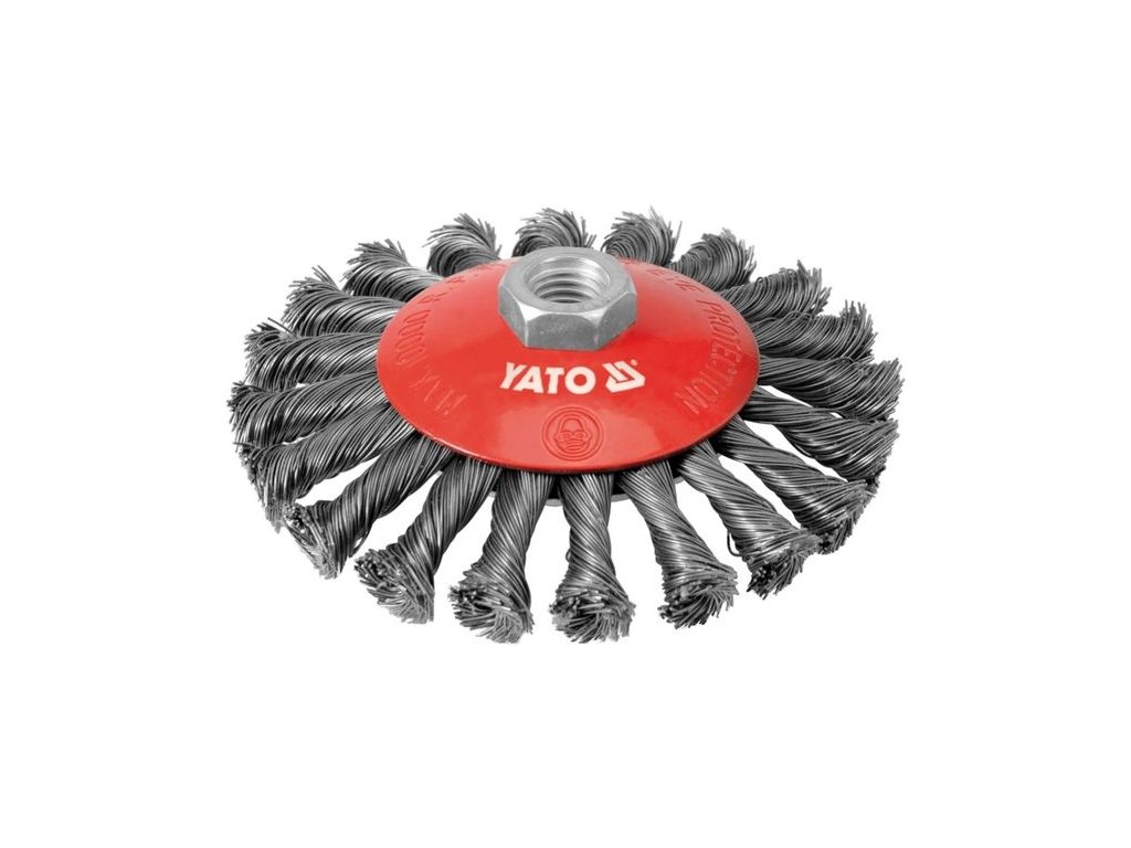 Kartáč kotoučový pro úhlové brusky, zhotovení lisovaná nerezová ocel do vlnitého drátu.
