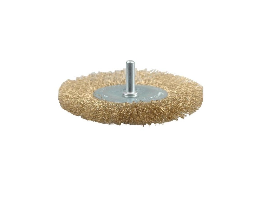 Kartáč kotoučový pro vrtačku, zhotovení pomosazený ocelový drát vlnitý.