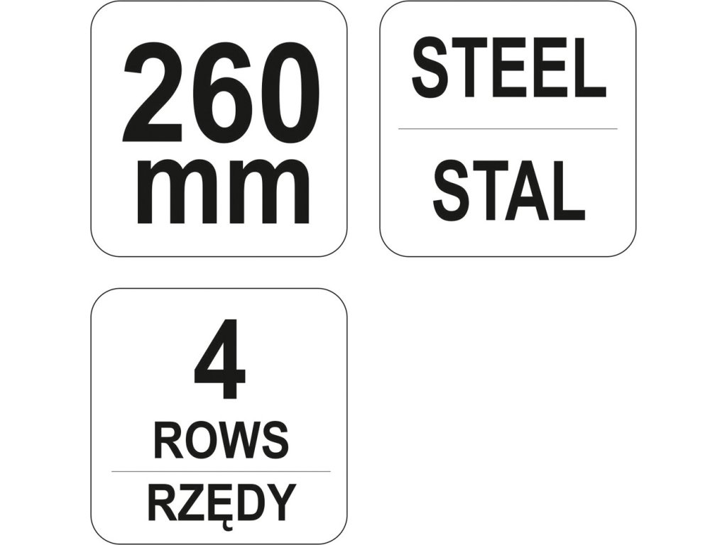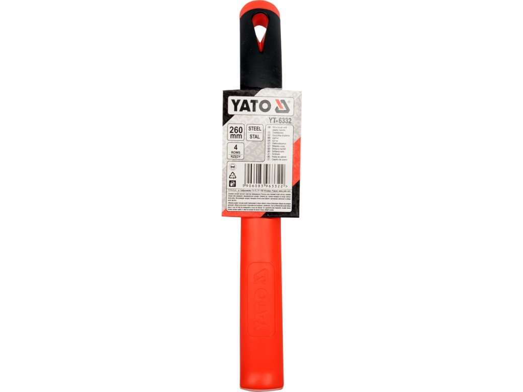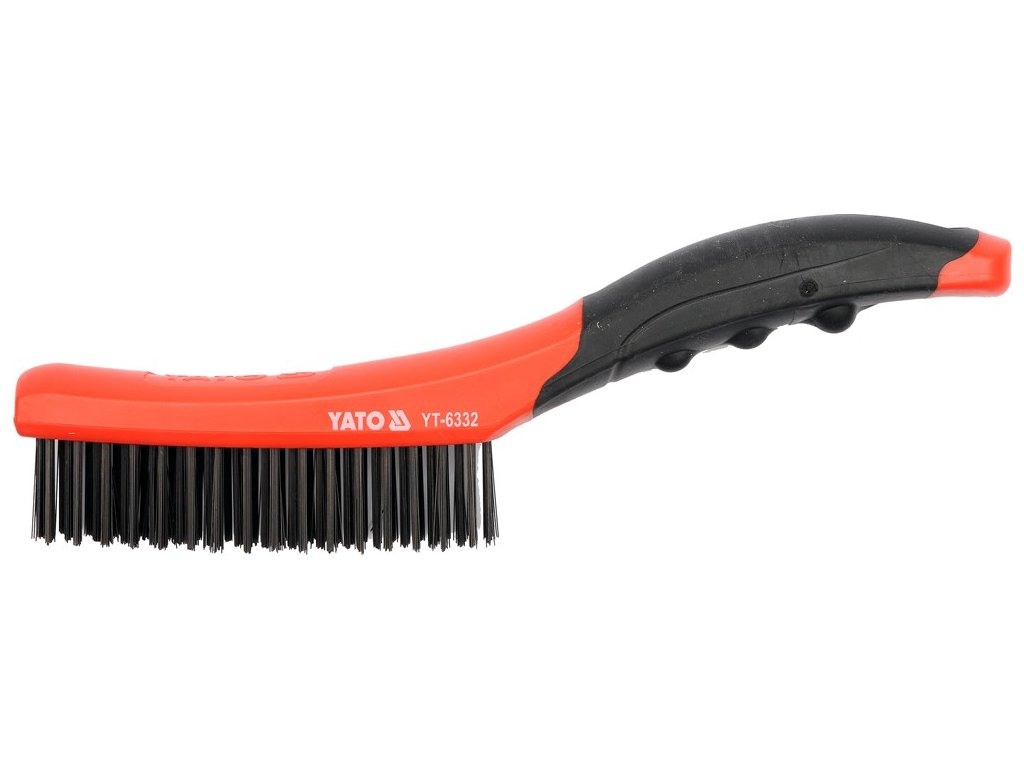 Drátěný ocelový kartáč na čištění tvrdých povrchů od rzi, barev, zbytků omítek a jiných nečistot.