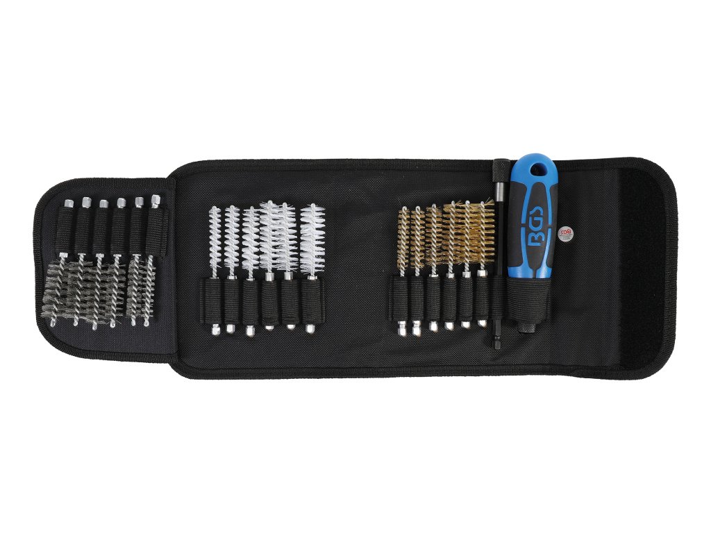 Kartáče válcovité sada s výměnnou rukojetí,20 dílů v pouzdru - BGS 379