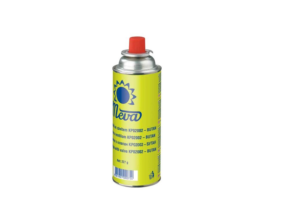 Jednorázová plynová kartuše s ventilem MEVA KP02002 Hmotnost: 227 g Rozměry: výška 200 x průměr 68 mm Náhradní butanová kartuše pro piezo pájecí hořák – soupravu MEVA KP01006. Připojování pomocí ventilu. Vyrobena v souladu s EN 417.Doplňkové parametry