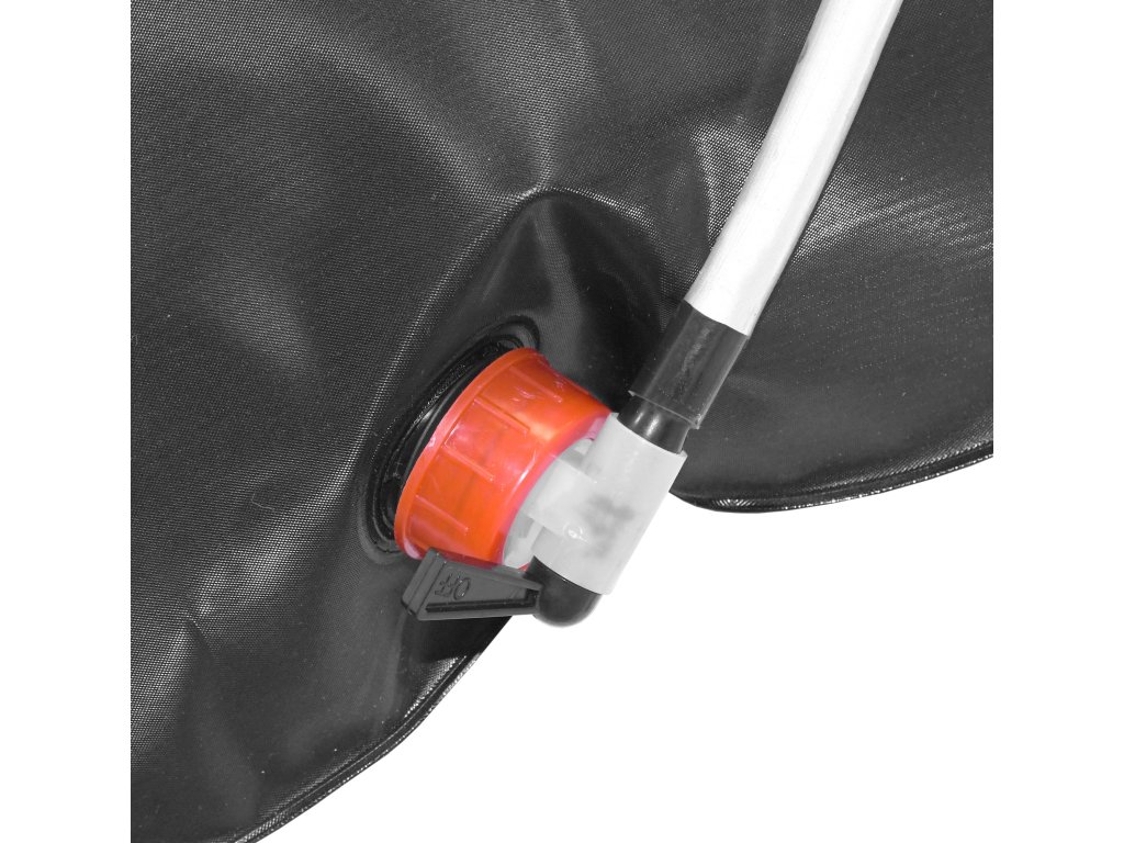 Zhotovení z odolného PVC černé barvy s vnějšími rozměry naplněného vaku 40 x 40 x 26 cm. Vak je navržen tak aby se po zavěšení na slunném místě voda ohřála pro příjemné osprchování.