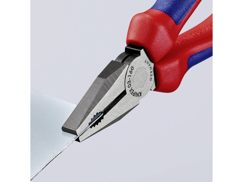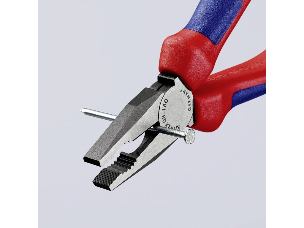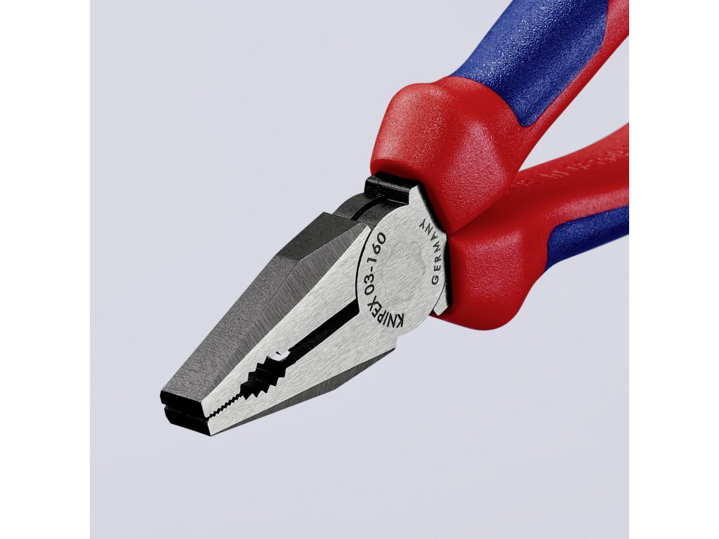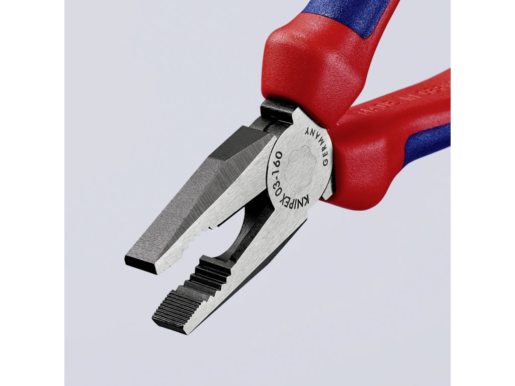 Kombinované kleště („kombinačky“), přecvakávání vodičů až 16 mm^2, délka 16 cm, PVC rukojeti – KNIPEX 03 02 160