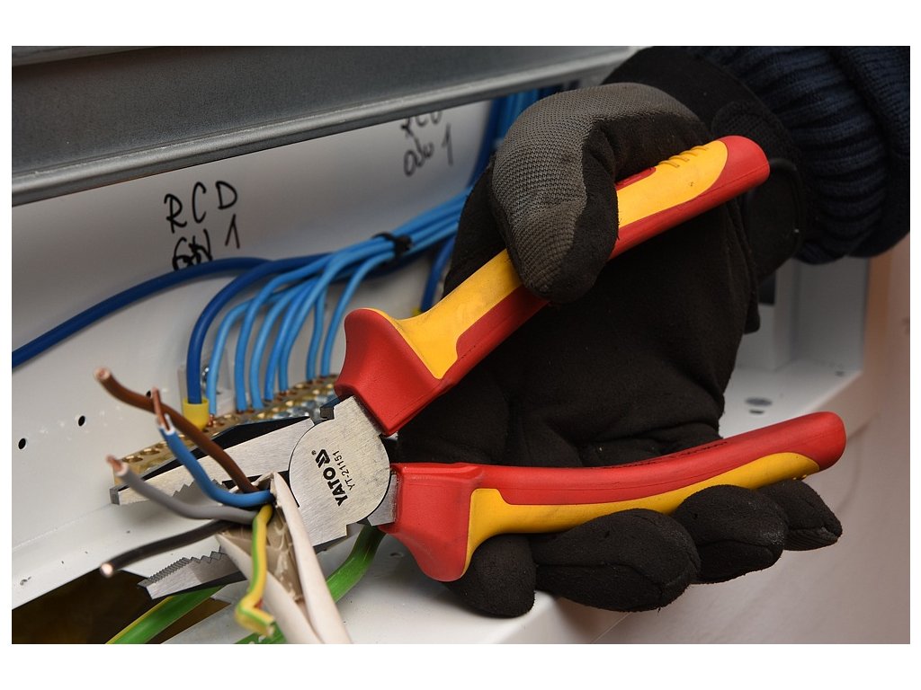 Kleště mají na rukojetích vícevrstvou izolaci s certifikátem VDE, která umožňuje použití při práci s napětím do 1 kV.