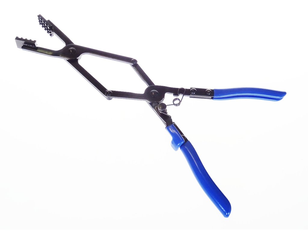 Speciální nástroj na práci s různými typy spon na hadicích vozidel. Extra délka 430 mm a dvojitý kloub umožňují práci i ve velmi špatně přístupných místech, jako jsou podvozky, motorové prostory apod. Čelisti lze zajistit pomocí aretační páčky.