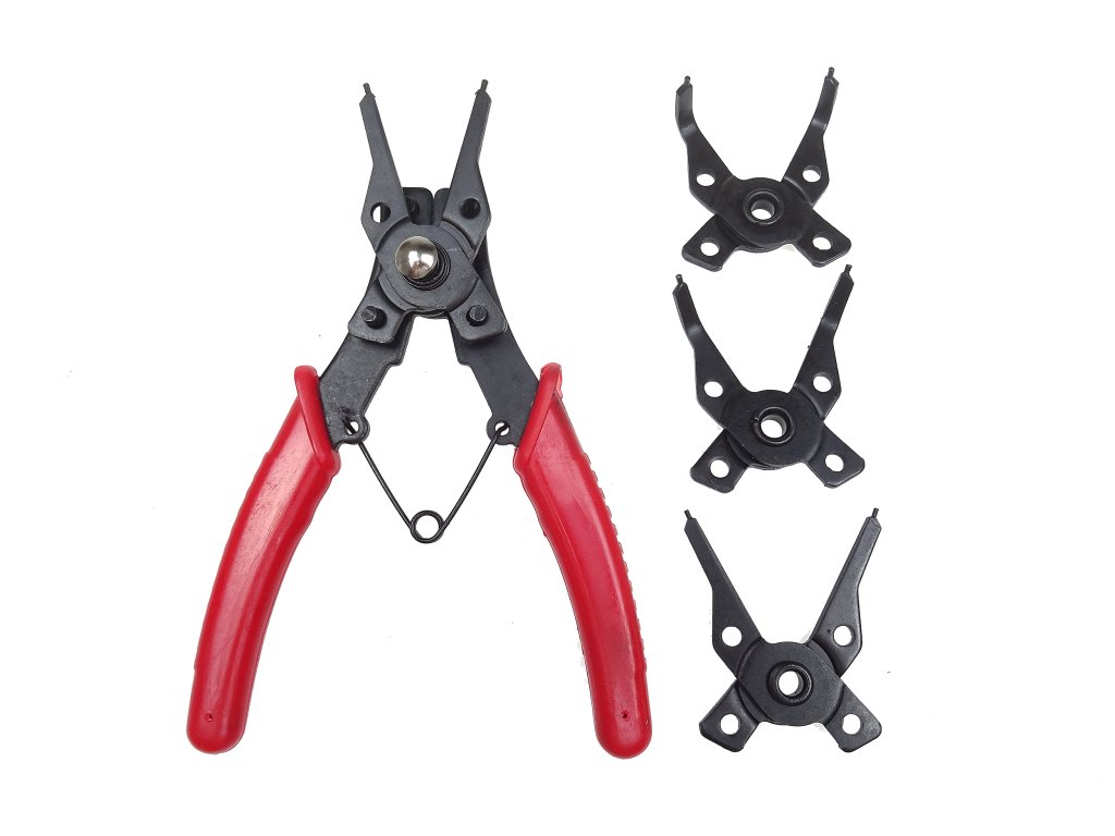 Kleště na segerové pojistné kroužku, tzv. „segrovky“, s vyměnitelnými čelistmi na různé pojistné kroužky, univerzální – QUATROS QS24718