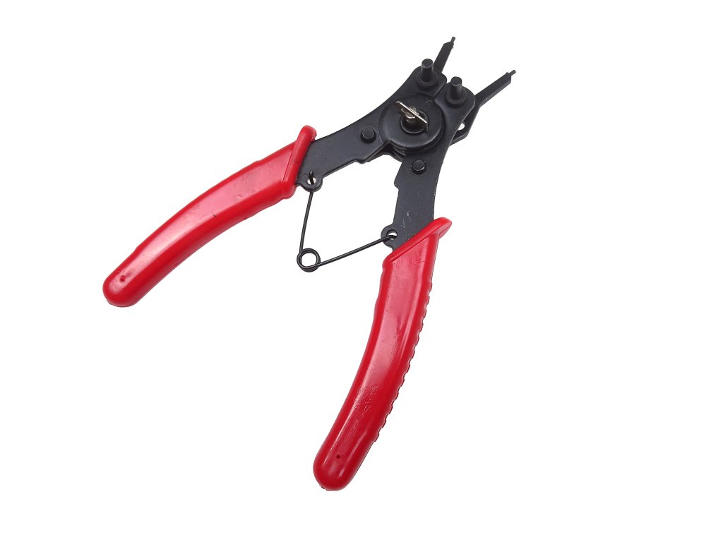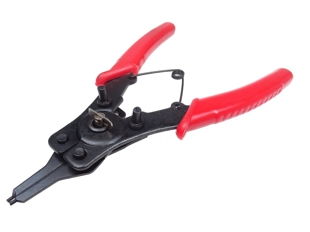 Přípravek na montáž a demontáž pojistných kroužků typu seger, pro vnitřní i vnější typ. Rozsah čelistí je 12 až 50 mm.
