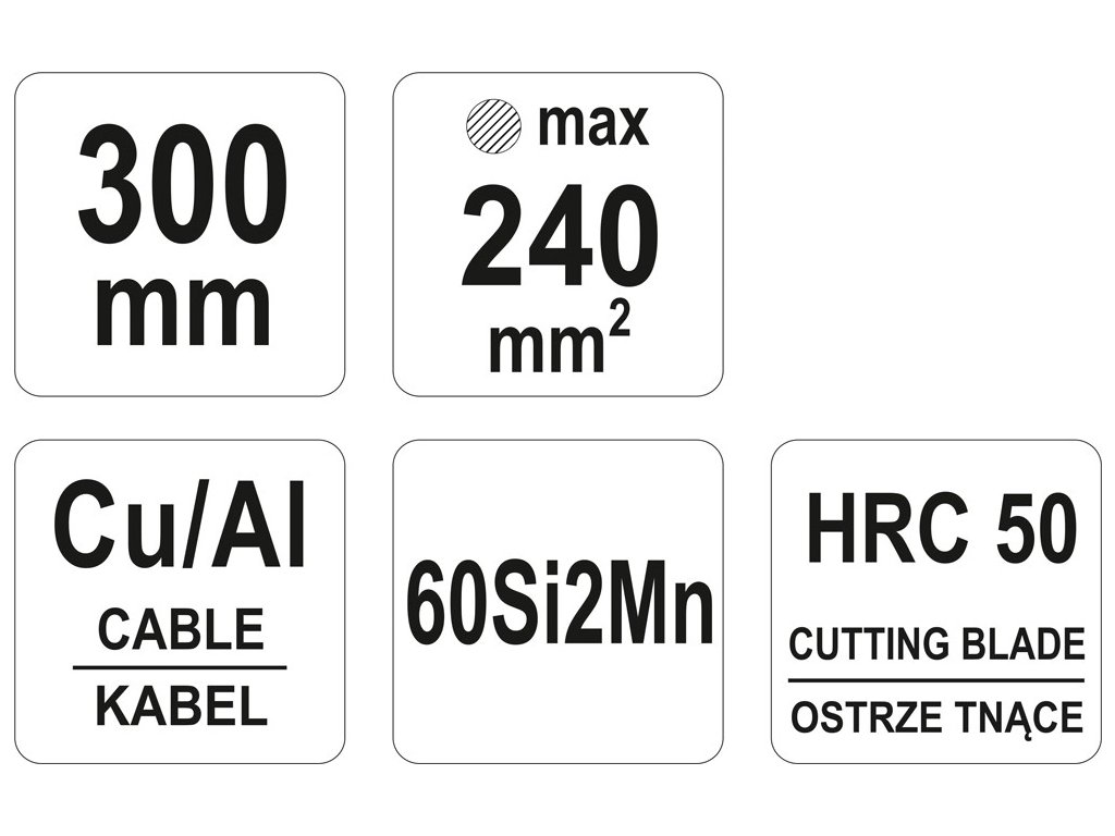 Štípací elektrikářské kleště pro Al a Cu vodiče a více žilové kabely do průměru 240 mm2. Nůžky jsou vhodné i pro stříhání hadic.