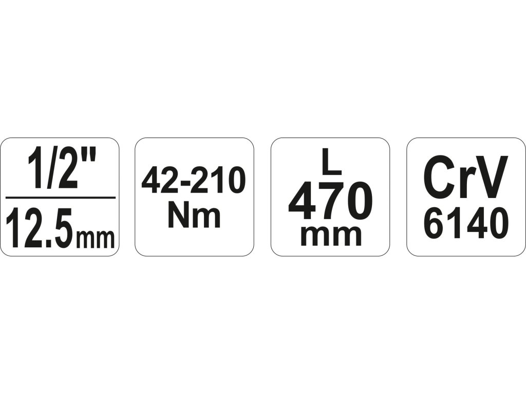 Momentový klíč Yato s rozsahem 42 - 210 Nm se zakončením 1/2".