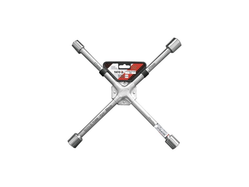 Klíč je vyroben z vysoce kvalitní CrV oceli rozměrů 400 x 400, s průměrem trubek 16 mm. Jeho 4 ramena mají koncovky přizpůsobenx všem šestihranným metrickým typům šroubů a matic používaných u kol osobních a lehkých užitkových vozidel (17, 19, 21, 22 mm).