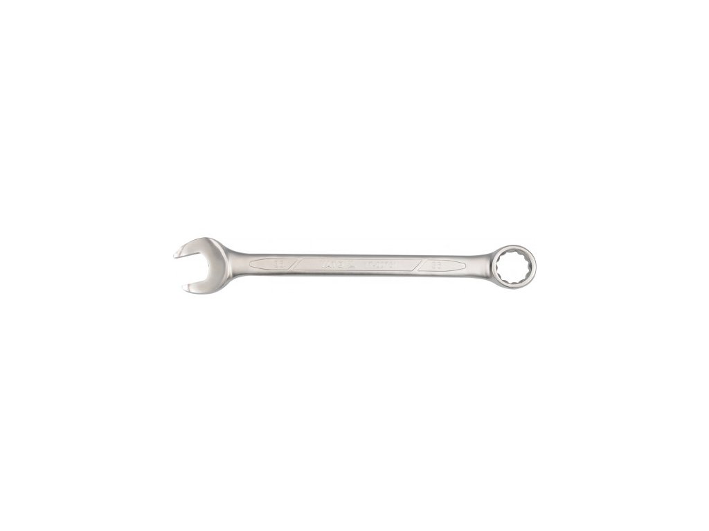 Očkoplochý klíč Yato vyrobený z chromvanadiové slitiny oceli, povrch je částečně satinovaný a leštěný do vysokého lesku. AS-Drive je vylepšený profil u nástrčných a očkových klíčů, v tomto případě očka.