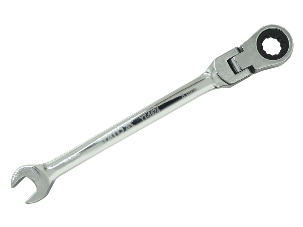 Klíč očkoplochý ráčnový s kloubem s dvanáctihranným profilem opatřeným ráčnou s jemným 72 zubým chodem.
