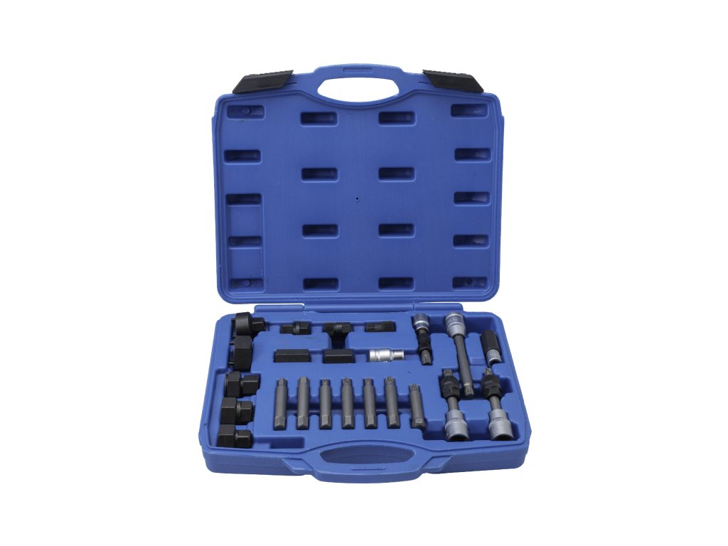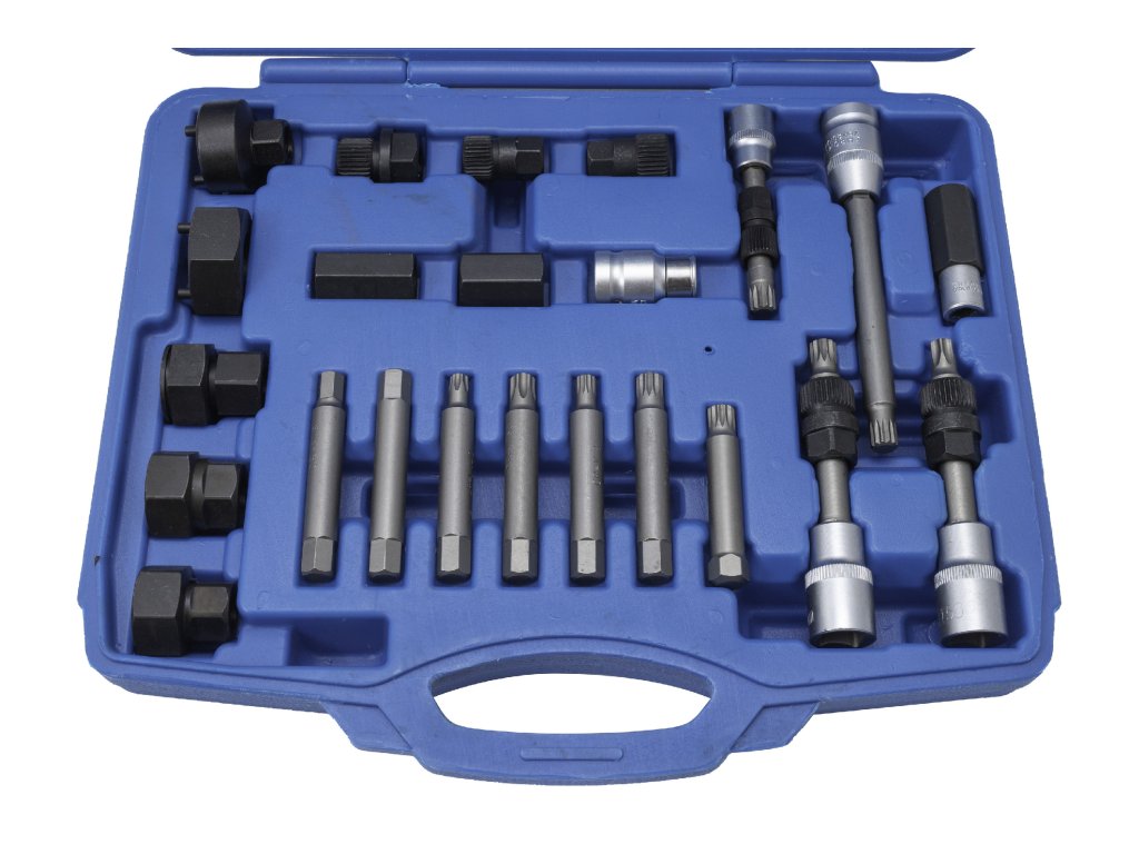 - celkem 24 různých bitů, klíčů, nástavců, hlavic a adaptérů pro servis alternátorů