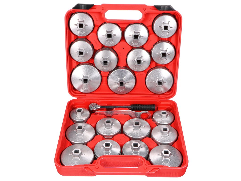 Praktická sada násadkových klíčů na olejové filtry je určen pro povolování a utahování olejových filtrů v osobních autech i dodávkách.