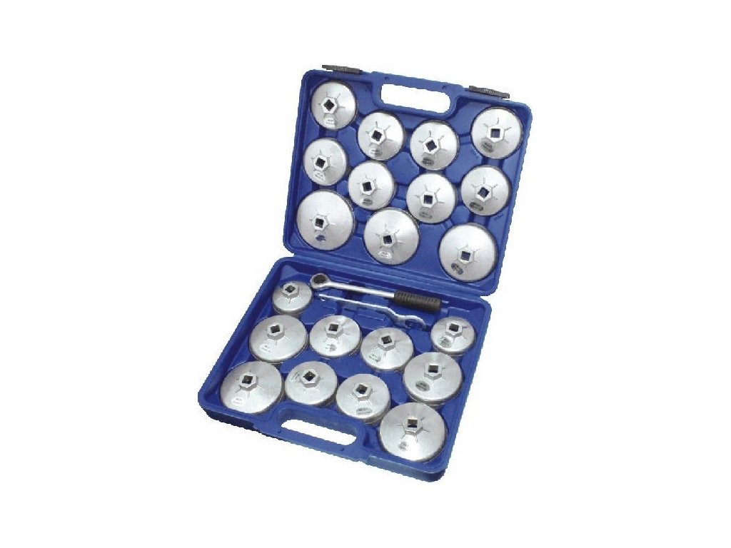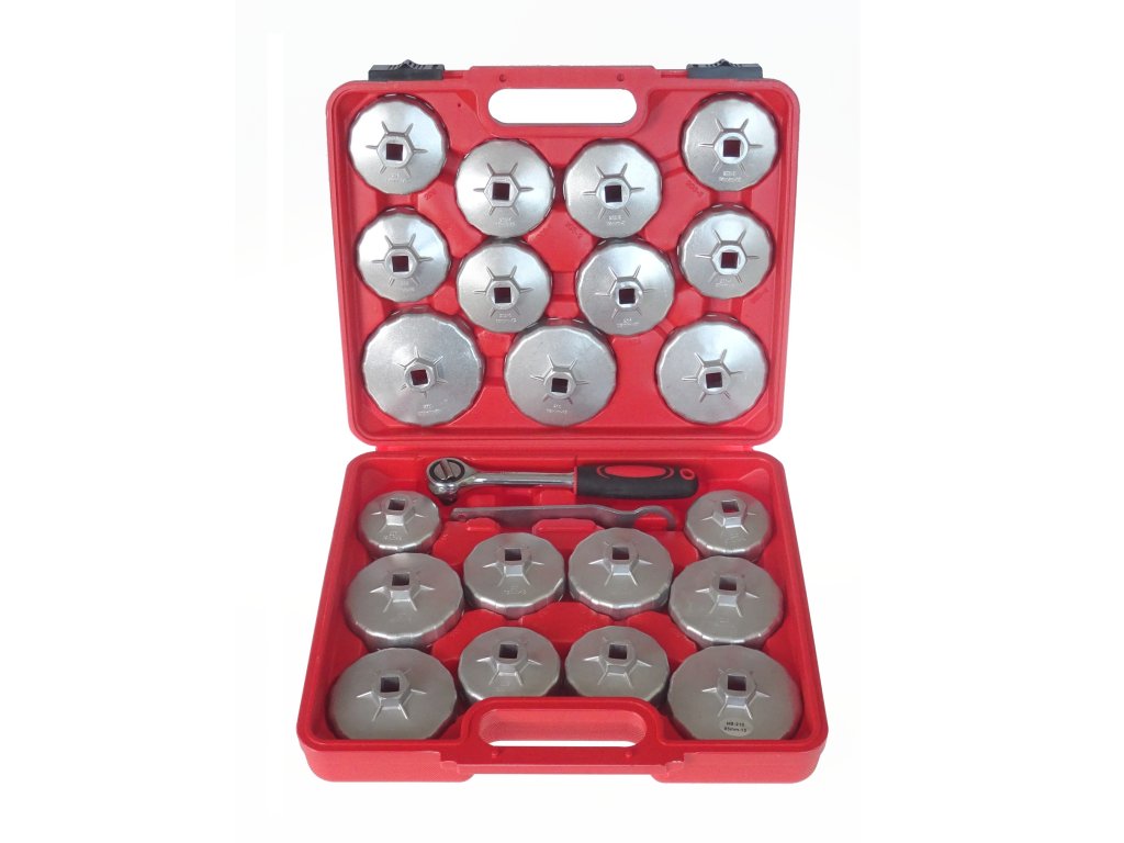 Klíče miskovité – hlavice na povolení a utažení olejových filtrů, sada 23 dílů v plastovém kufru – QUATROS QS64111