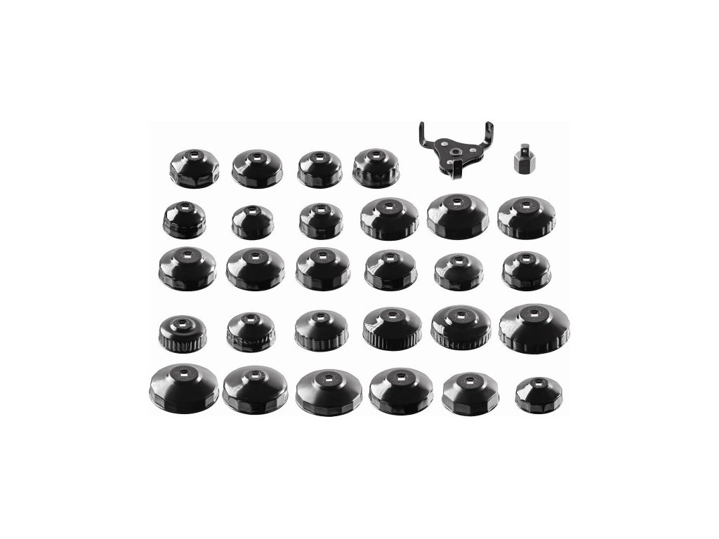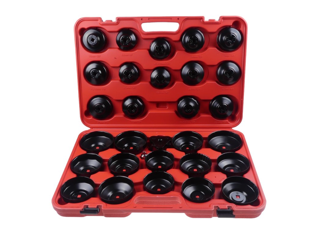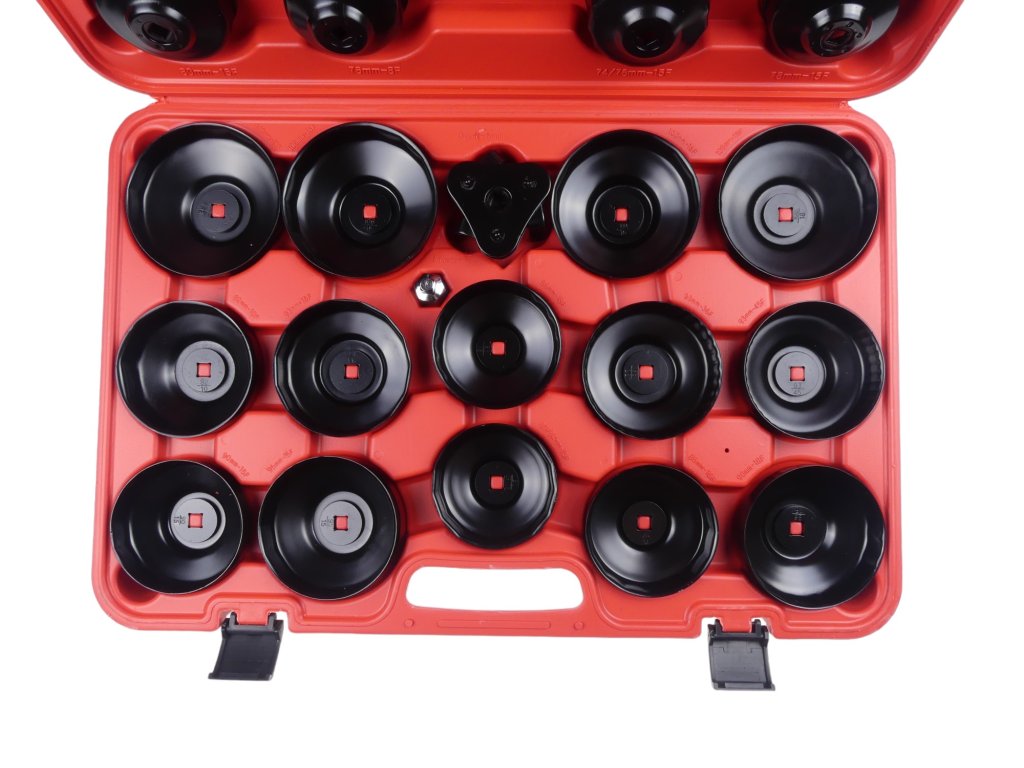Sada miskovitých klíčů na olejové filtry v plastovém kufříku obsahuje 30 kusů nejrozšířenějších rozměrů těchto klíčů. Všechny mají speciální povrchovou úpravu.