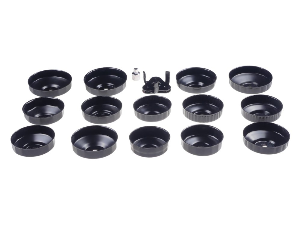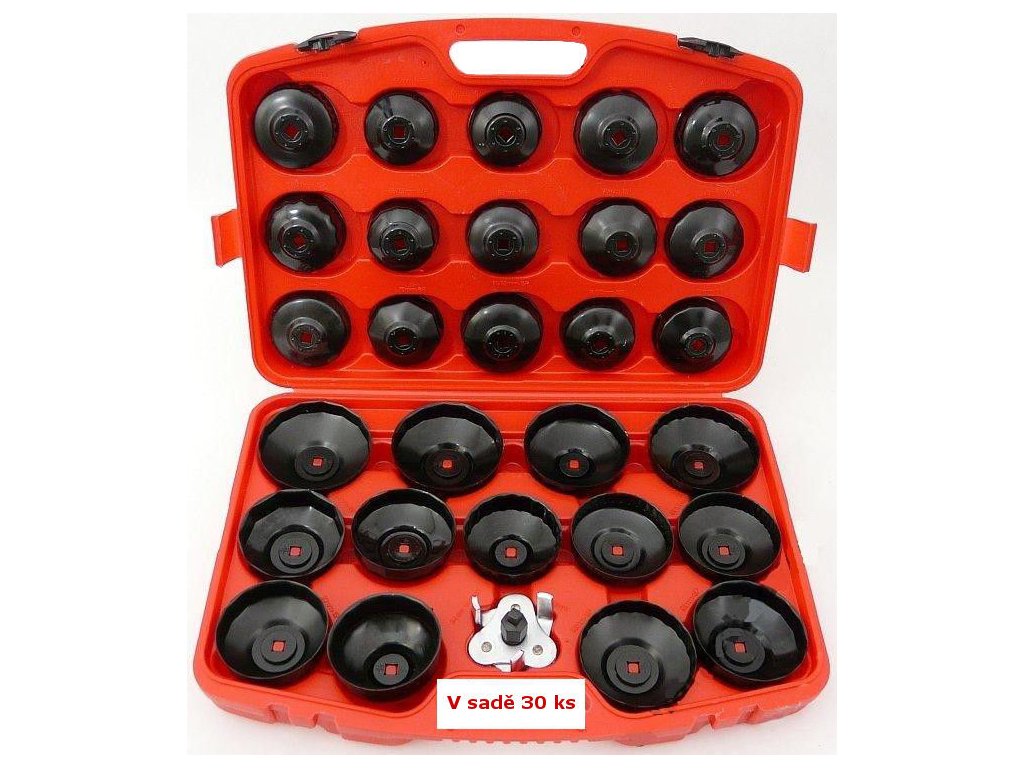- klíče na olejové filtry (28×): 65mm 14hran, 66mm 6hran, 65-67mm 14hran, 68mm 14hran, 73mm 14hran, 74mm 15hran, 74-76mm 15hran, 75-77mm 15hran, 76mm 12hran, 76mm 8hran, 76mm 14hran, 76mm 30hran, 78mm 15hran, 80mm 15hran, 80-82 15hran, 86mm 16hran, 86mm 18hran, 90mm 15hran, 92mm 10hran, 93mm 15hran, 93mm 36hran, 93mm 45hran, 95mm 15hran, 96mm 18hran, 100mm 15hran, 106mm 15hran, 108 15hran, 108mm 18hran15hran; 108 15hran; 108mm 18hran