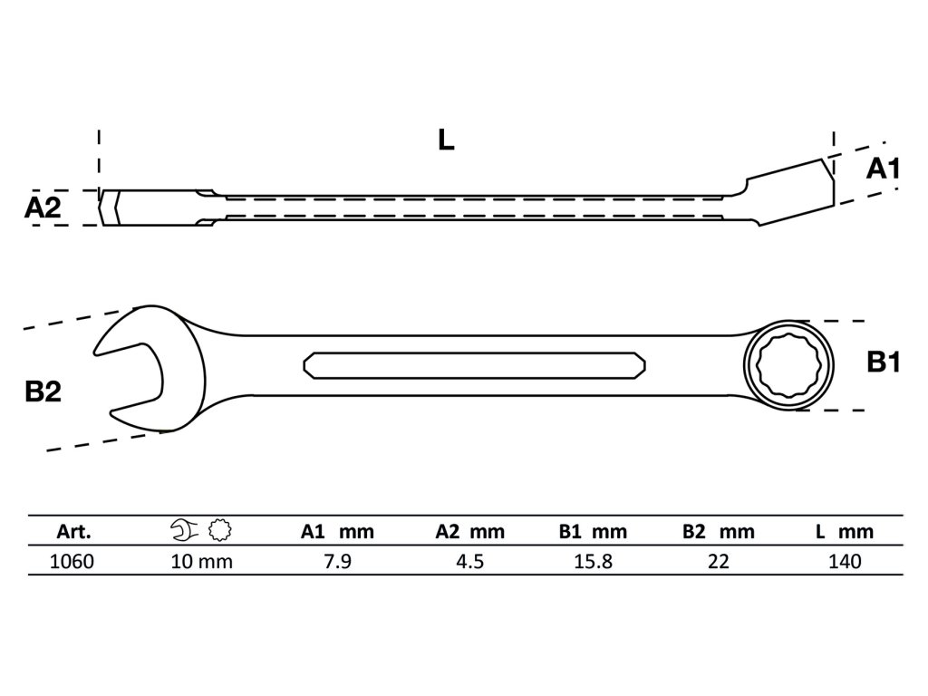 Klíče očkoploché CrV 15° vyhnuté (6, 7, 8, 9, 10, 11, 12, 13, 14, 15, 16, 17, 18, 19, 21, 22, 24, 27, 30, 32, 34, 36, 38, 41, 46, 50 mm).