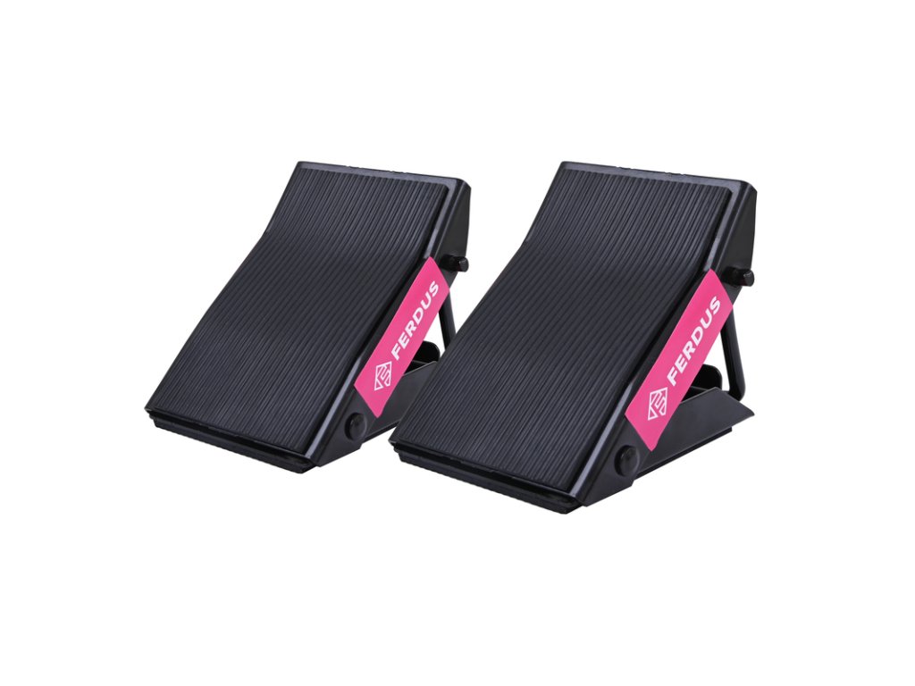 Zakládací klíny pod kola vozidel (tzv. špalky), skládací konstrukce, kovové s gumovým povrchem, sada 2 kusy (1 pár) – Ferdus 10.454