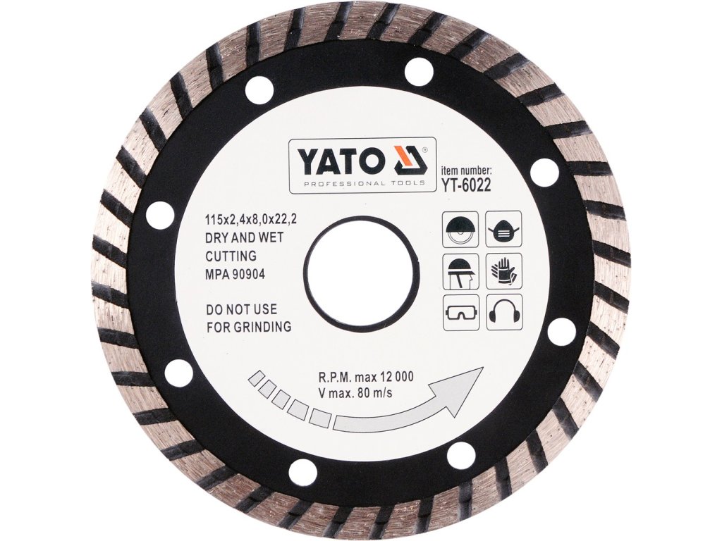 Kotouč diamantový pro suché i mokré řezání s použitím na beton, dlažbu, zdivo, kámen a pískovec.
