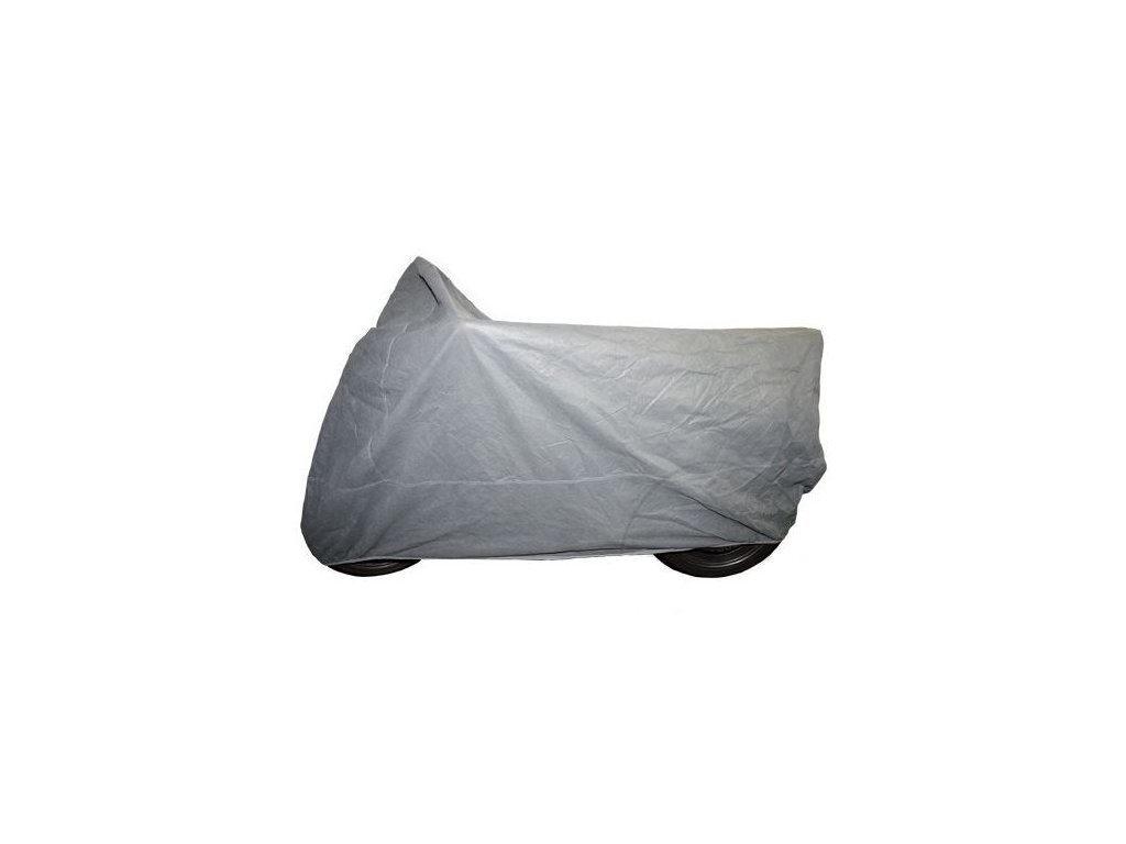 Plachta – přehoz pro zakrytí motocyklu, velikost XXL 2,64 x 1,04 x 1,3 m, prodyšná, šedivá barva, v látkovém obalu – JMP 711.56.36 Univerzální plachta na motorku pro parkování uvnitř budov. Chrání stroj před prachem a podobnými nečistotami při odstavení v garáži a dalších prostorech. Díky prodyšnému materiálu se pod ní nehromadí vlhkost. Vnitřní strana je z jemnějšího materiálu, který nepoškozuje lak. Odolná proti roztržení. Dodáváno v obalu na zip s rukojetí – přehoz je možné pohodlně uskladnit.Doplňkové parametry