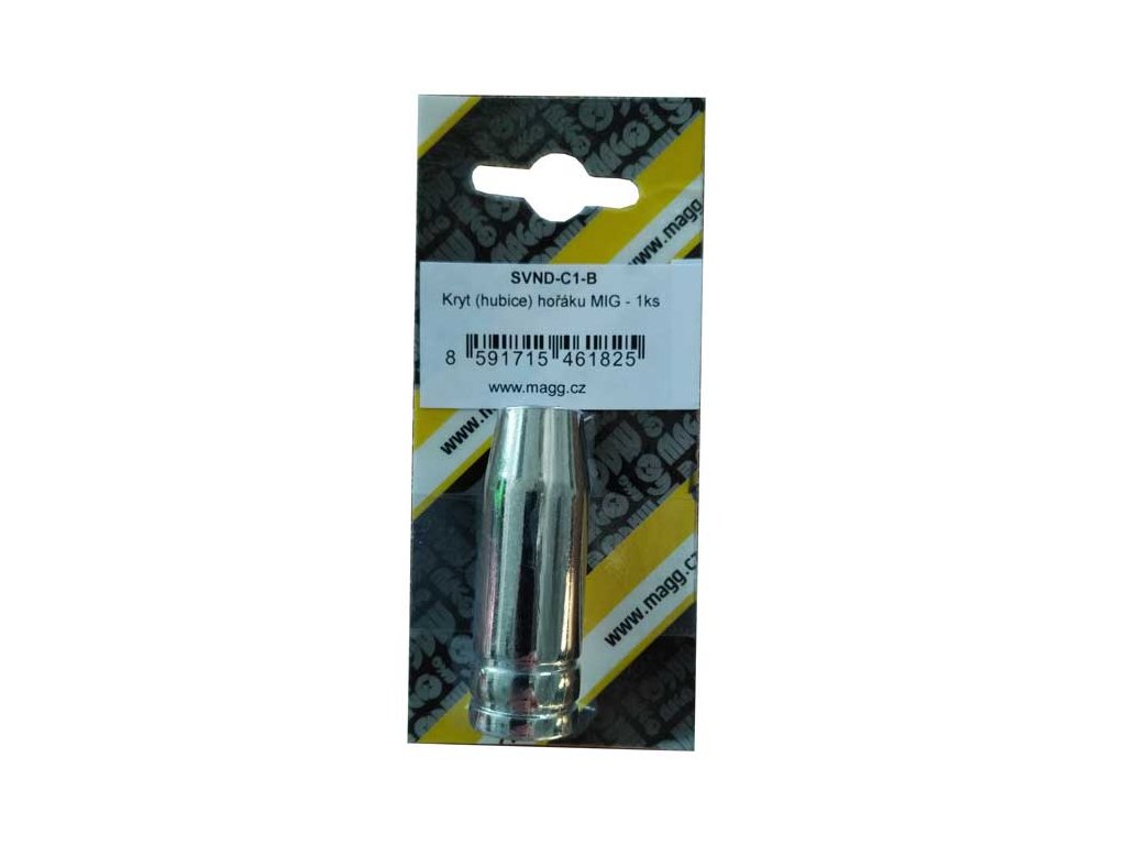 Kryt (hubice) na hořák MIG Kryt (hubice) hořáku MIG Délka 53 mm, průměr 12 mm Tvar: kónický Kvalitní provedení. Blistrové balení 1 kus.Doplňkové parametry