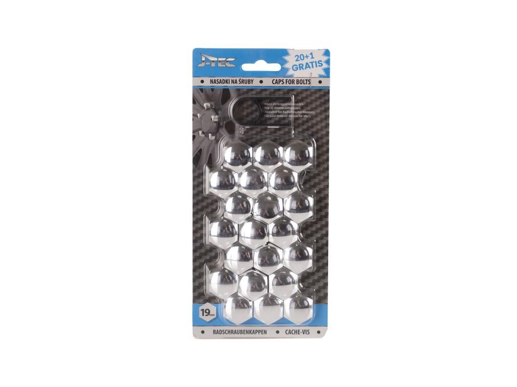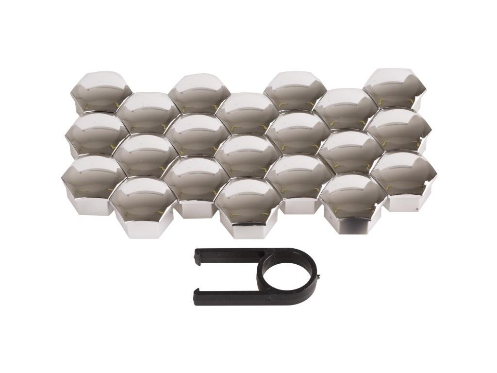 Kryty šroubů kol, 19 mm, chromové, s pinzetou, 21 ks