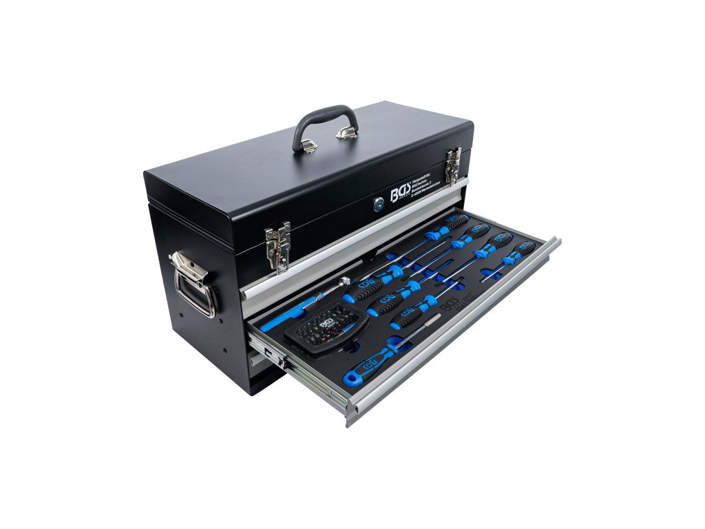Rozsáhlá a chytře poskládaná souprava nářadí pro autoservis, dílnu, výrobní provozy, ale i pro náročného domácího kutila, který si potrpí na kvalitu svého vybavení. Basa obsahuje často používané vybavení pro mnoho druhů opravárenských či výrobních činností.