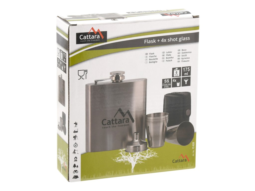 Set 175 ml placatky s nálevkou z nerezové oceli, se 4x nerezovými panáky v praktickém pouzdře.