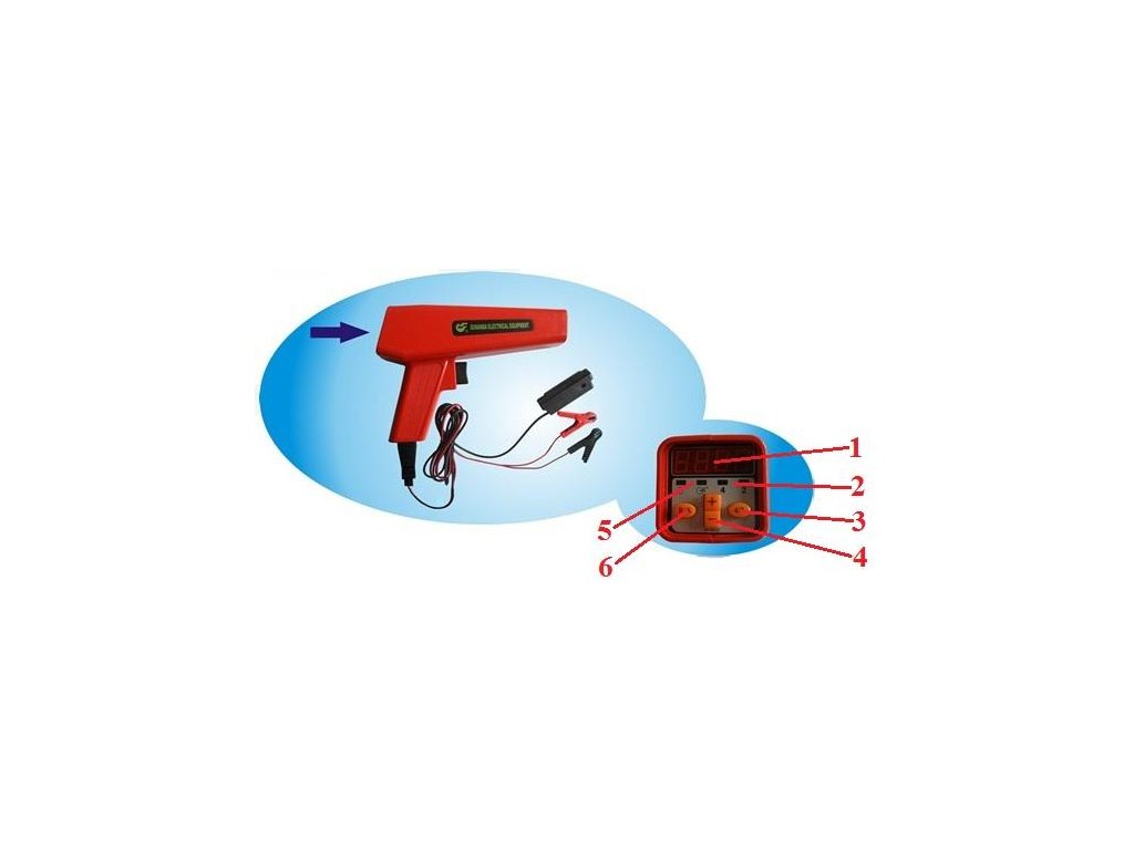 6 – tlačítko volby funkce měření úhlu předstihu zapalování nebo otáček
