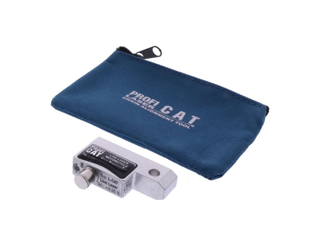 Měřič na řetěz pro zjištění souososti řetězu a rozety motocyklu, bateriové napájení, v nylonové tašce – Profi SE-CAT Line Umožňuje změřit rovinu hnacího (sekundárního) motořetězu a rozety zadního kola – stroj má díky tomu správné jízdní vlastnosti (nejede tzv. bokem) a opotřebení zadní pneumatiky je rovnoměrné. Snadné použití: označovače se připevní v určité vzdálenosti od sebe na řetěz a k rozetě se následně umístí měřič. Laserový paprsek se namíří směrem na označovače a zkontroluje se, zda jimi linka paprsku prochází stejně (tzn. zda paprsek prochází po celé délce řetězu ve stejné vzdálenosti od jeho okraje). Obsah dodávky: - 1x laserový měřič - 1x nylonová taška - čočková baterie (3X AG5) - 4 označovače řetězuDoplňkové parametry
